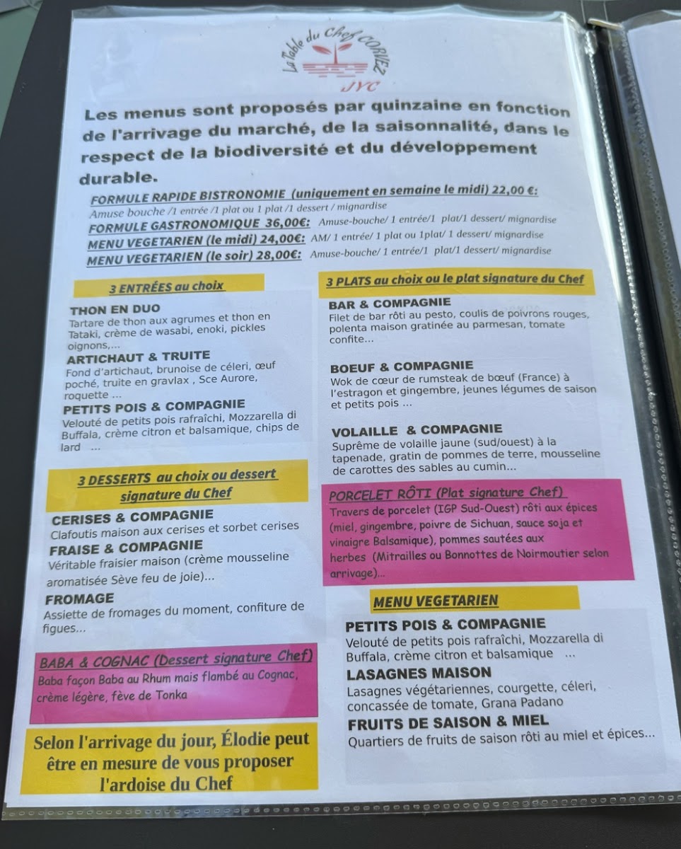 Introducing the menu at La table du chef Corvez